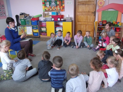 Celem tego dnia było uświadomienie dzieciom, że zwierzęta są nie tylko do zabawy. Są to istoty żywe, które czują, reagują i nie należy robić im krzywdy. Co myślą o tym święcie dzieci? Jakie mają ulubione zwierzątka i jak o nie dbają , szczególnie teraz w okresie jesiennych chłodów? Na te i inne pytania odpowiadały przedszkolaki. Następnie wysłuchały wesołej historyjki o „Borsuku”, który lubił konstruować wynalazki dla przyjaciół. Po części tematycznej milusińscy przystąpili do kolorowania swoich zwierzątek. Miłym akcentem końcowym bibliotecznego spotkania był pokaz przedstawienia, który dzieci przygotowują na „ Święto pieczonego ziemniaka”.